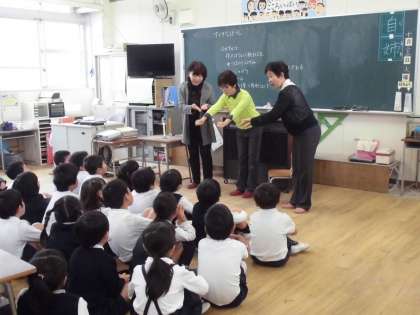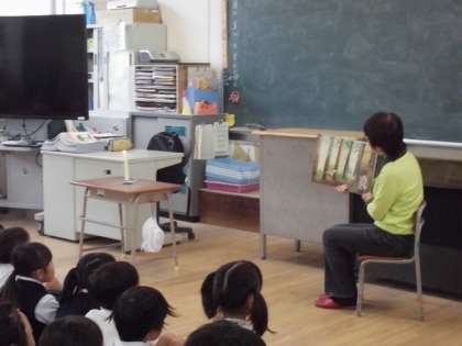 2年生のプログラムは、お話「へこきよめさま」、絵本「どうぶつたいじゅうそくてい」「ポレポレやまのぼり」「なぞなぞな〜に あきのまき」「どうぶつのからだ4 どうぶつの耳」「からすのパンやさん」でした。