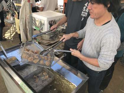 鷹合小学校も、PTAソフトボール部の方々中心に「からあげ屋さん」を開きました。1000食分、約120キロの鳥肉を揚げて販売(^O^)。完売だったそうです(+o+)