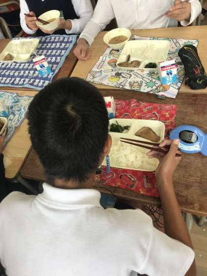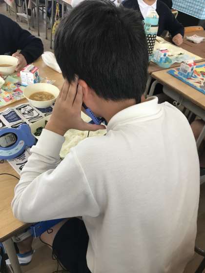 今日のカミカミセンサー実験は、6−1の保健給食委員です。4人が調査してくれていました。