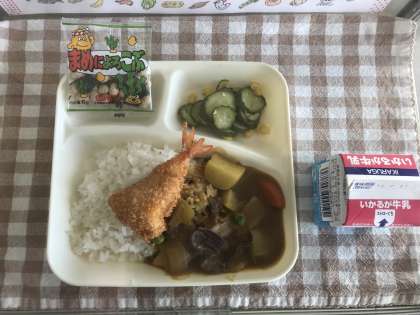 ちょっと年がいっているメンバー(笑)は、「えびフライカレー」って、「卒業献立」だったよなぁ〜、平日の献立ではなかったよなぁ〜、と。