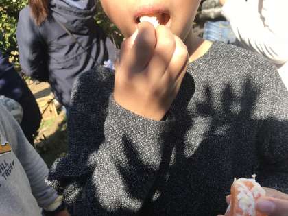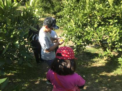 やまびこ園では、ミカンはミカン園だけで食べることになっています。食べすぎると、後でバーベキューがおいしく食べられないから、どのミカンが甘くて美味しいか、よく品定めして、もいでいた子ども達です(^O^)
