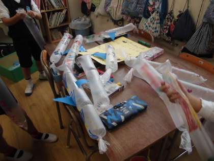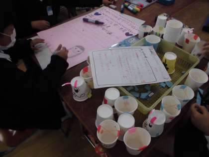 日曜参観では、「おいもレストラン」と「おもちゃランド」の両方の様子をみていただくそうです。お客さんになっていただいて、1年生を招待する前のリハーサルにご協力ください(笑)