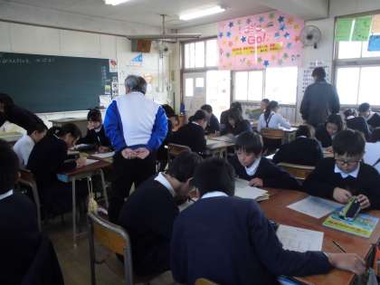 中野中学校の先生方が、小学校まで来られて中学の授業を実施する、毎年恒例の五校の連携行事です。今年は、1組は社会。2組は保健体育です。