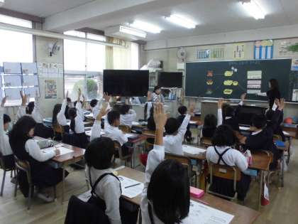1年生も栄養指導を受けました。テーマは「すききらいしないでたべよう」という内容です。まだまだ1年生は、「お魚がきらい」「野菜が苦手」「牛乳が嫌い」等々、好き嫌いが多いでしょうね。でも、大事な成長期。脳も体も摂取した栄養によって成長していくわけです。今日の学習で、少しでもいいからすききらいなく食べられるようになってほしいですね。学習してすぐの時は、「がんばるぞ」と思っている時なので、家の方でも挑戦させてください(^O^)