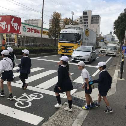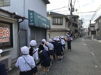 2年生は、「小さな旅に出かけよう」というテーマで、自分たちで切符を買って電車に乗る、という体験学習を生活科で実施します。学校からグループごとに出発し、近鉄矢田駅まで歩いていきます。そして、矢田駅で切符を買って、針中野まで電車に乗ります。帰りは、クラスごとに商店街経由で帰って、冬の街の様子を見学しながら帰ってきます。