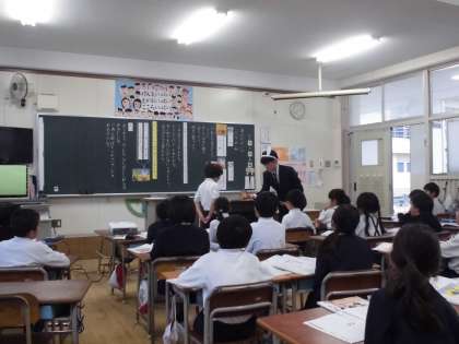 昨日、2年2組津村学級で、今年度の研究教科「道徳」の授業研究会がありました。「くりのみ」という資料を使って「親切、思いやり」という価値について学びました。