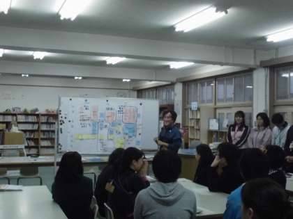 2年生が提供した授業をもとに、教員全体で検証し、成果や改善点を話し合いました。塚本小学校の校長先生を指導講評の講師にきていただき、ご指導いただきました。