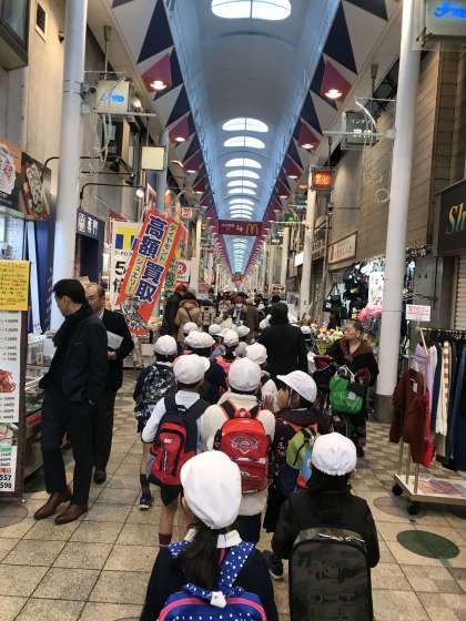 「小さな旅」は大成功でした。帰りは、商店街を通って、冬の街の様子を見つけました。クリスマスの装飾や、冬物の衣服、鍋の材料…冬らしさを発見できたかな?