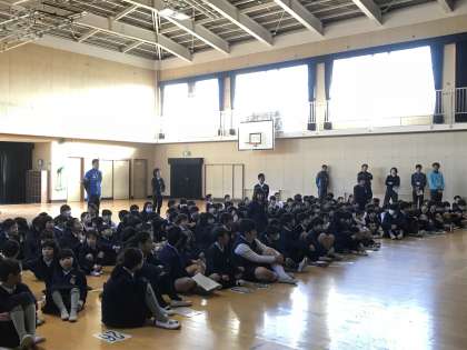 図書委員会からは、2学期の学年別「読書の記録」ランキングの発表でした。各学年の一位が紹介され、拍手で称えられました。二位、三位の人も含めて、図書室前に掲示して紹介されています。