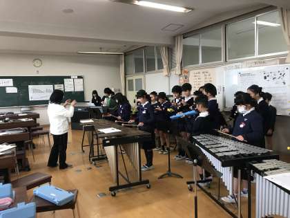 2学期、久野先生がリハビリで休まれるときに、音楽を指導してくださっていた高須先生。今日が、音楽の指導の最後となります。合奏「キリマンジャロ」なんとか、サマになってきました。動画に撮って久野先生に聞かせてあげよう、と演奏しました。校長先生も見に来られ、「4時間でここまで仕上がったら大したもの」と褒めてくださいました。