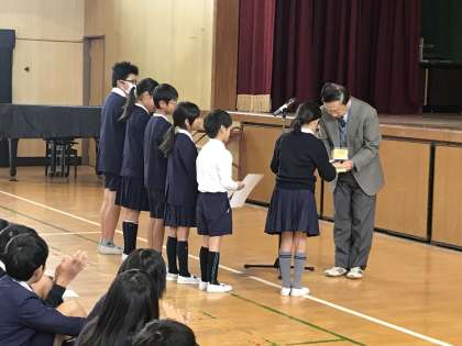校長先生から賞状が渡され、みんなから拍手をもらいました。