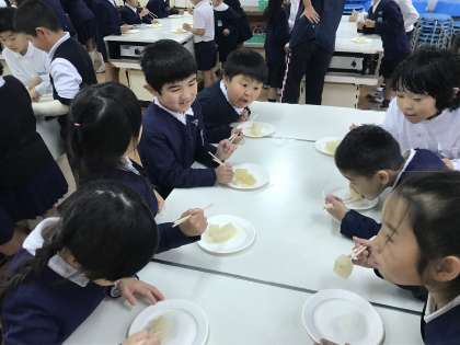 みんなで、「いただきま〜す!」の後、「おいし〜い!」の大合唱(笑)