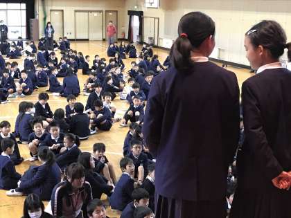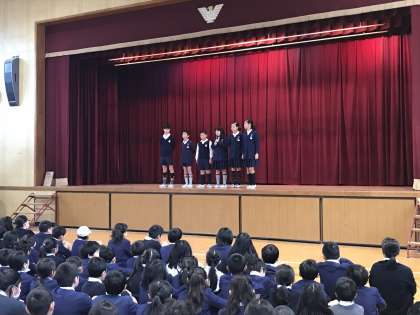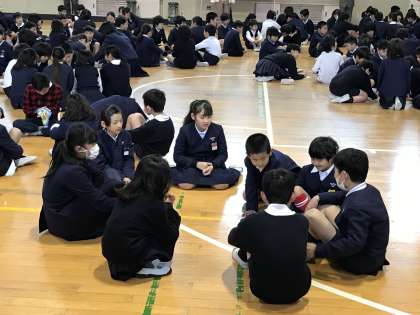 今日の児童集会は、生活・集会委員会主催による「イントロクイズ」でした。「U.S.A」「YMCA」「Lemon」「アンパンマンのマーチ」などが出題でした。たてわり班で、なかよく輪になって答えを出していました。