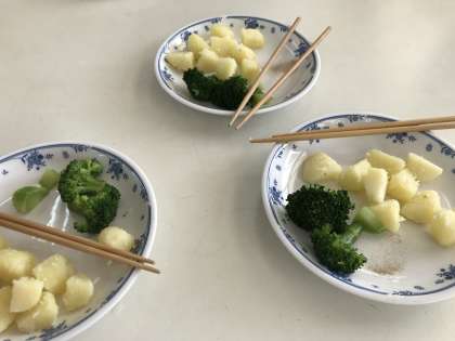 できあがったら、小皿に取り分けて盛り付けです。大皿に盛っているグループもありました。