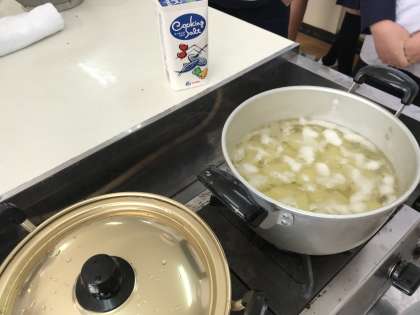 昨日に引き続き、今日は6年2組の調理実習でした。2組もワイワイガヤガヤと楽し気に、実習に取り組んでいました。