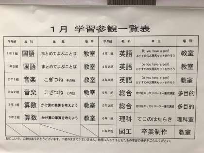 子ども達の学習の様子を見ていただく機会を増やそう、と今年度から1月にも学習参観を設定しました。寒い中、たくさんの保護者の方々に来ていただき、ありがとうございました。