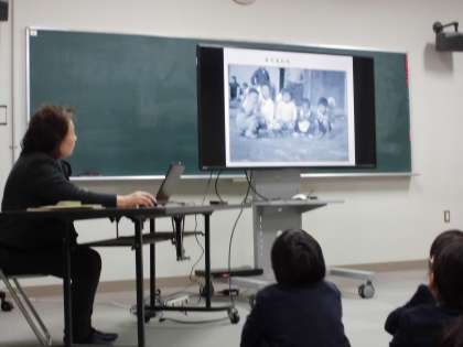 五時間目に、講師の筒井先生がお越しくださり、「昔の様子」についてお話をしてくださいました。