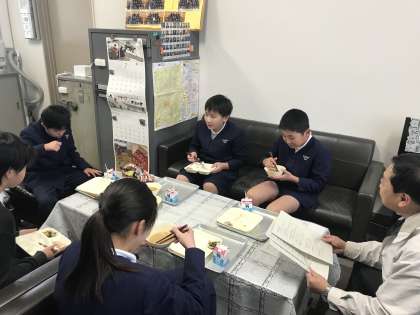 今日の校長室ランチは、6年2組2班でした。事前アンケートから校長先生が友達クイズを出され、みんなで答えを出し合っていました(^O^)