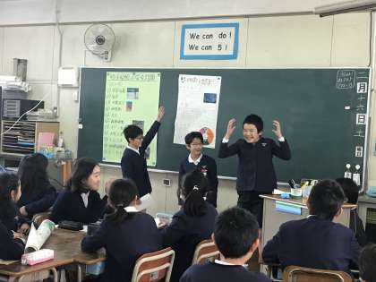 1組は、「地球規模の環境問題」発表会でした。お笑い部分を入れながらの演出でした。2組は理科室での授業を見ていただきました。6年生は、年に1回理科の授業参観をしていただけるように組んでいます。5年2組は、ちょっと早めですが、みていただきました。