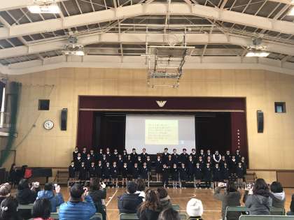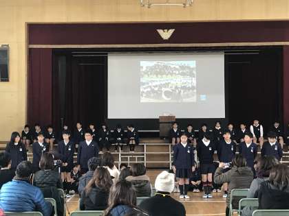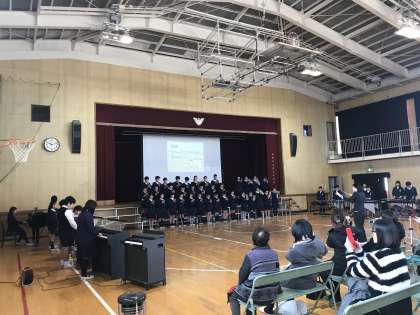 6年生は「感謝の気持ちを伝えよう」でした。群読あり、合奏あり。最後には、一人ひとりから感謝のメッセージを伝えました。そして合唱「3月9日」