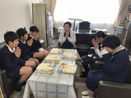 校長室ランチは、2組の3班でした。今日も校長先生の「わはははは」が聞こえてきていました(笑)