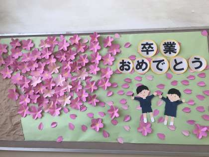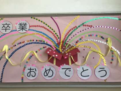 卒業に向けて、お祝いの掲示板が続々できあがっていってます。
