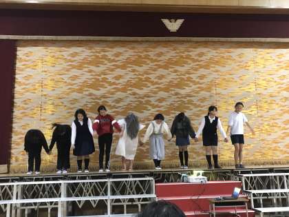 ダンスあり、ホラーコメディあり。短い準備期間とは思えない仕上がり。さすが、6年生。幕間に、飛び入りの「パンケーキ食べたい」が登場するアドリブもあって(^O^)、和気あいあいの、ほのぼのとした茶話会でした。