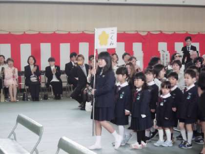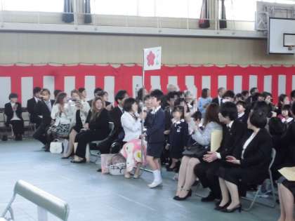 6年生に先導されて入場してきた新1年生。会場の方々から温かい拍手で迎えられました。(^O^)
