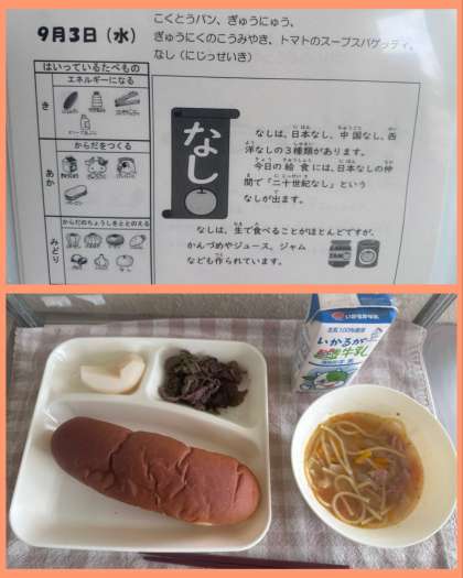 今日はトマトのスープスパゲッティです。あっさりとした味付けで美味しかったです。