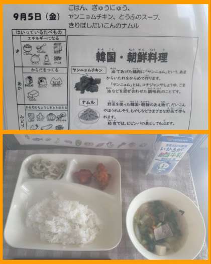 今日はヤンニョムチキンにきりぼし大根のナムルと、韓国・朝鮮の料理でした。
