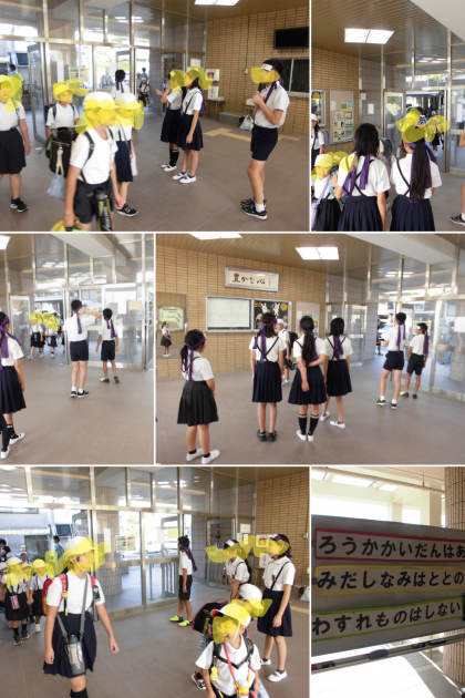 今朝も生活・集会委員会の児童が玄関に立って、ルールを守ろう週間の呼びかけを行っていました。