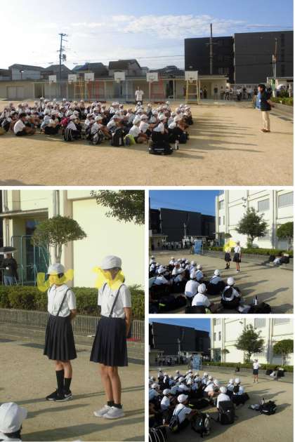 時間になると、出発式が行われました。司会の児童も、出発の言葉の代表児童も、マイクなしで校庭に声を響かせ、堂々と役割を果たしていました。素晴らしいです。