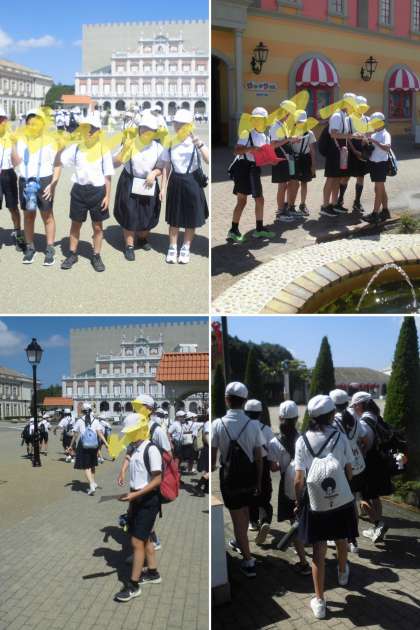 スペイン村に到着しました。道もすいていて、予定より少し早めの到着です。少しバス酔いした児童はいましたが、大きな体調不良はありません。