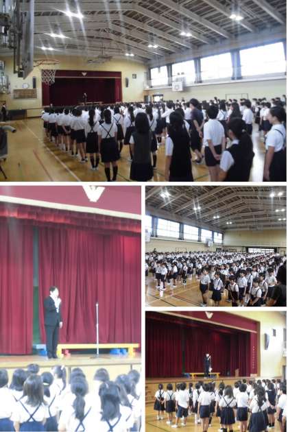 ようやく涼しくなってきたので、今日は月初の月曜日なので講堂で朝会を行いました。