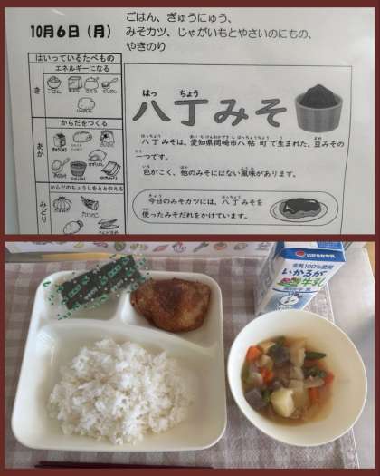 今日はみそカツです。みそカツのみそだれには八丁みそが使われています。みそカツが名物の愛知県で生まれたもので、色が濃く旨味も強いです。