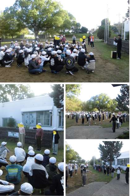 朝のあいさつを元気にして、体を目覚めさせるためにラジオ体操をしました。