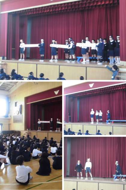 今日は火曜日ですが、講堂で児童集会が行われました。