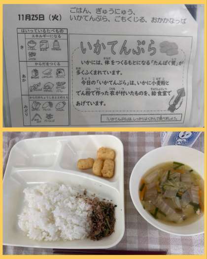 今日はいかてんぷらです。一口サイズに切ったいかを小麦粉とでん粉で作った衣をつけて揚げてあります。衣はサクッとしていて、中のいかは柔らかくとても美味しかったです。