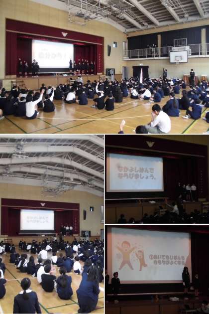 来週のあいさつ週間では、「自分からあいさつをする」ということを特に意識して頑張りましょう!と呼びかけをしました。