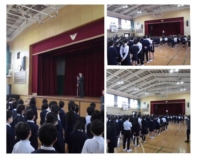 1年生も初めて参加しましたが、しっかり並んで話を聴くことができていました。