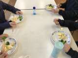 試食タイムです。粉ふきいもには、塩コショウ。ブロッコリーは塩ゆでしてあるので、...