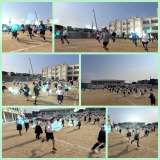 講堂で3年1組がプレルボールというスポーツを行っていました。 ボールをバウ...