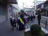 (左)今週はあいさつ週間です。寒い中、児童会の人が大きな声を出して、「おはようご...