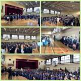 6年生が明日の学習参観で行う「Thanks Concert」のリハーサルを行い...