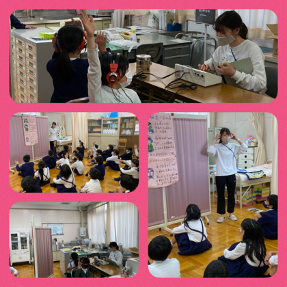 3年生は、聴力検査をクラスごとに実施しました。 白川先生から、検査の要領を教え...