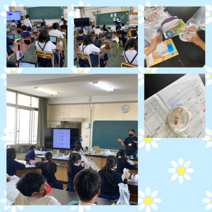 5年生は、理科の学習で「インゲン豆の発芽の条件」について学んでいました。「水・...