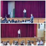 5年生は講堂で、心肺蘇生(胸部圧迫)体験を行いました。 映像をみて、心肺...