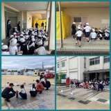 1年生は消防車見学と防災減災に関するDVD視聴をしました。 消防車見学では...