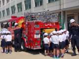 2時間目、1年〜3年は、学年に応じて「消防車見学」「新聞紙スリッパ作成」「煙テ...
