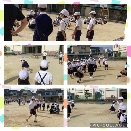 今朝の児童集会は、運動委員会と健康・給食委員会主催です。 はじめに、運動委...